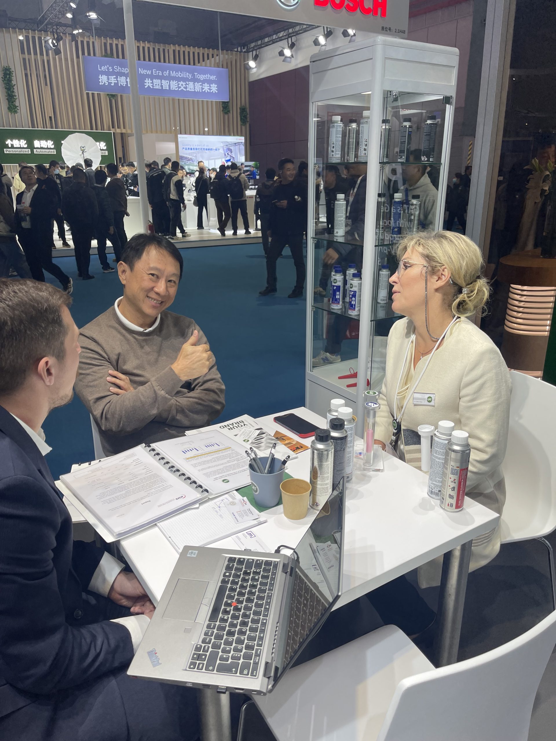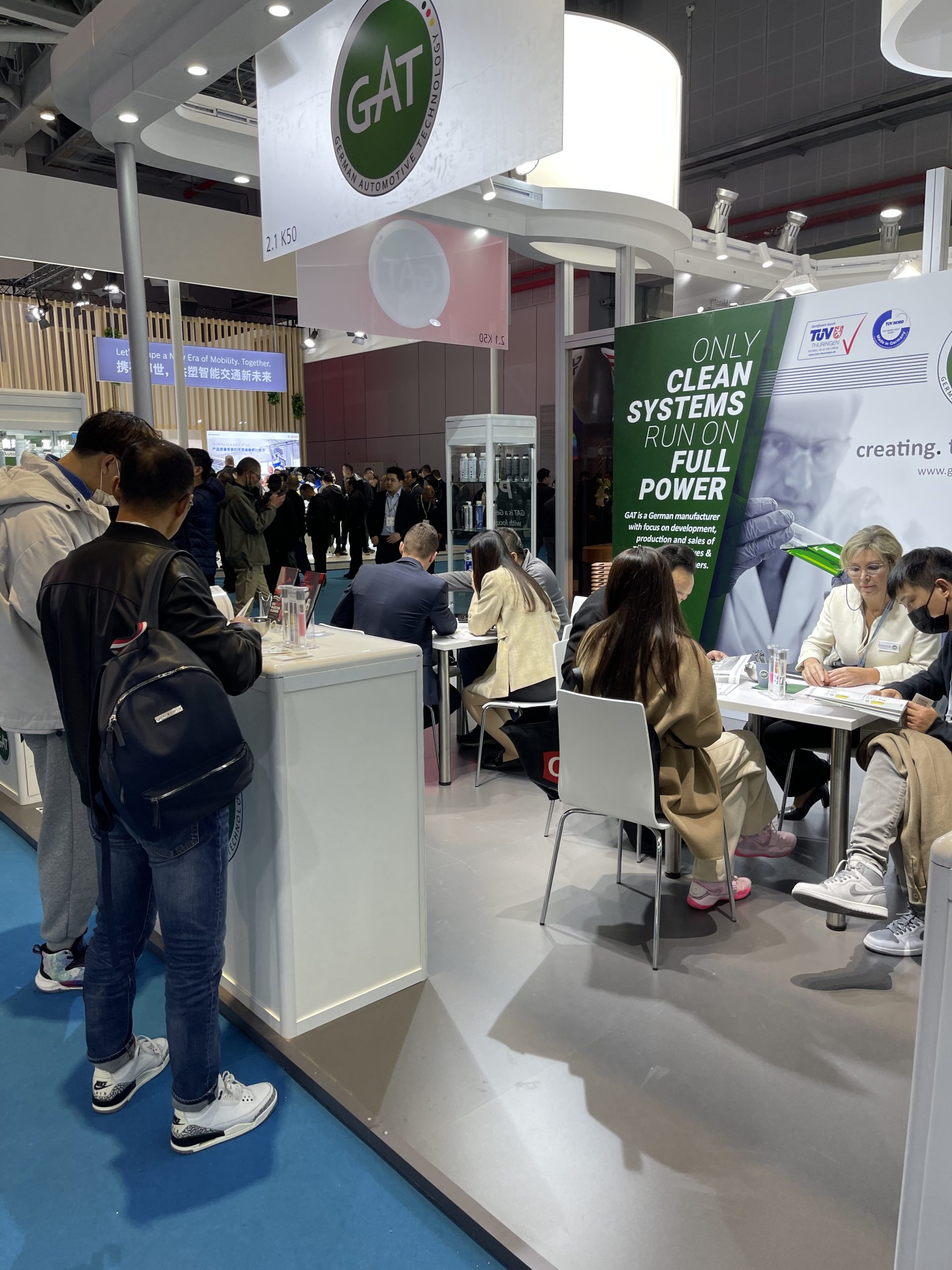 The second day of Automechanika Shanghai is over and was just as good visited as the day before. Numerous new interested parties visited the GAT booth No. 2.1K50 in Hall 2.1 today to find out more about the high-quality GAT Additives & System Cleaners “MADE IN GERMANY”. In addition, the GAT team was happy that a lot of existing partners have stopped by and finally a face-to-face exchange about the latest developments of GAT GmbH & Co. KG was possible again. The crowded floors in the German pavilion make the GAT trade fair team confident about the successful recovery of the market in the Asia-Pacific region.