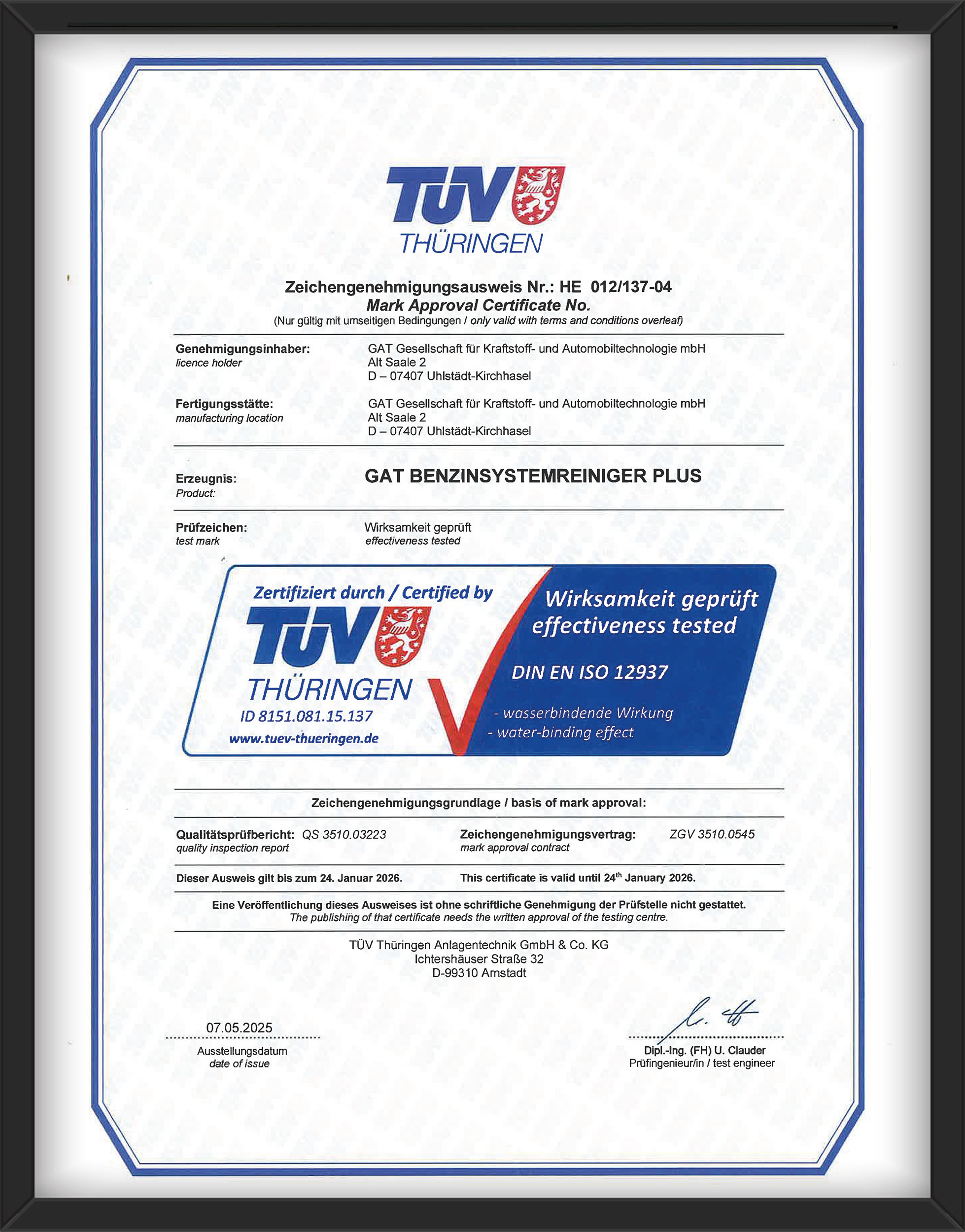 GAT es un fabricante alemán de aditivos y limpiadores de sistemas para el mercado y la industria de la posventa del automóvil, desarrollados y mejorados constantemente en su propio departamento de Investigación & Desarrollo y en sus laboratorios. Los excelentes conocimientos técnicos, el acceso a redes externas y las estrictas normas de control gubernamental garantizan la calidad de los productos de GAT. Un excelente know-how, el acceso a las redes externas, así como las estrictas normas de control gubernamental garantizan la calidad de los productos GAT.